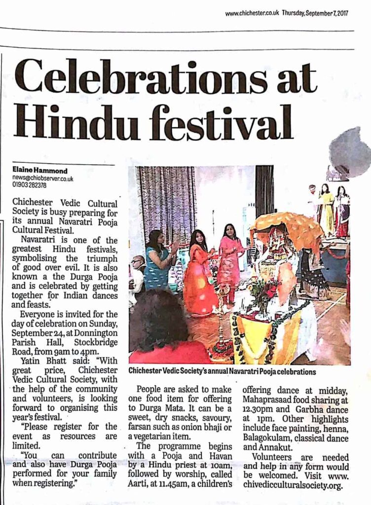 Navaratri News Observer _ Celebration Hindu Community 2016 ByChichester Vedic Cultural Society 18 October 201619 September 2021
