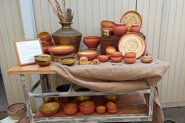 Vidya is also a professional potter. She makes contemporary hand-thrown functional pottery inspired by dance, India and life. In recent years her performance work has brought together her two passion, dance and clay. In addition to selling functional pottery she runs clay workshops. Her pottery and dance work has been now also a part of activities at Chichester Festival Theatre.